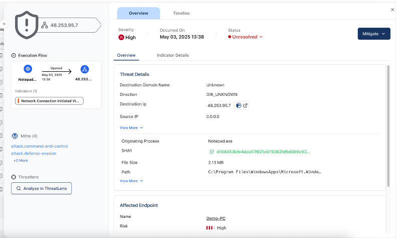 Native integration with Cyble data lake delivers timely threat context and actionable intelligence at machine speed, unifying threat intel with endpoint response.
